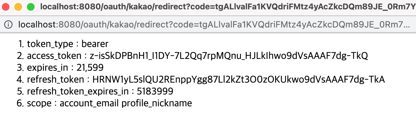 redirect_uri는 내가 미리 카톡 API 서버에 지정해둔 것이므로 해당 리다이렉트 주소에 맞게 처리하면 된다.