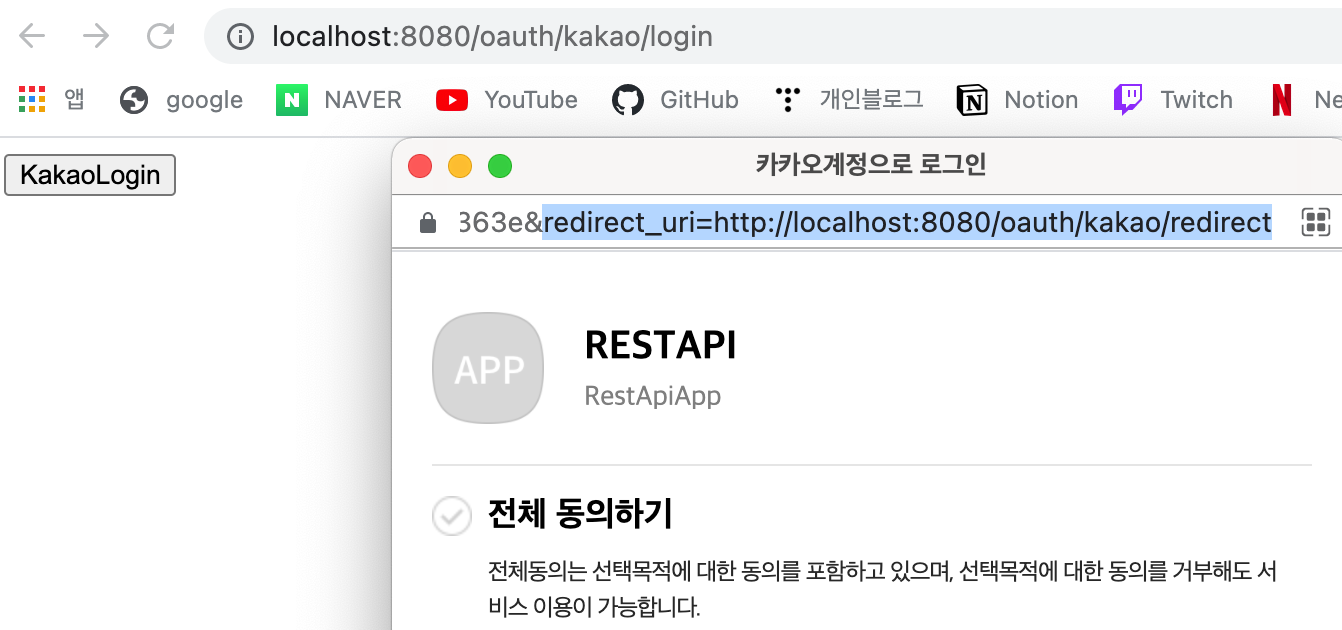 - [http://localhost:8080/oauth/kakao/login]로 접속