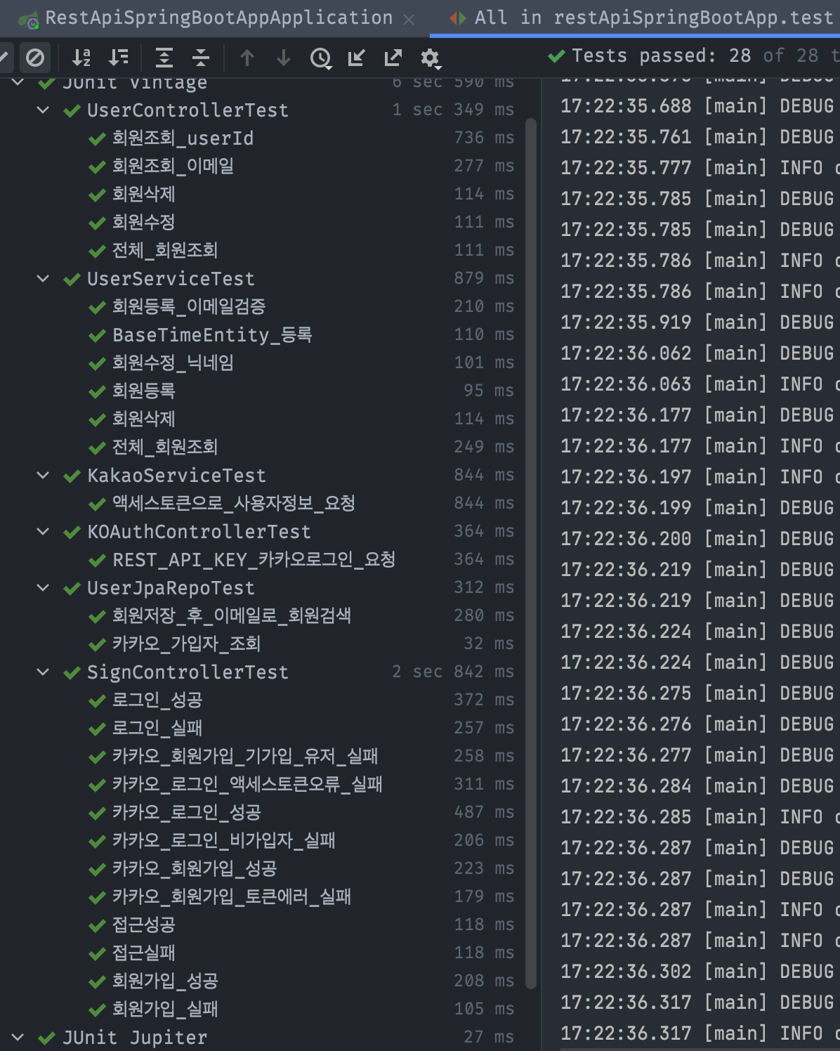 테스트까지 진행하면서 OAuth 2.0 Kakao API로 회원가입 / 로그인 기능 구현 및 검증을 진행해보았다.