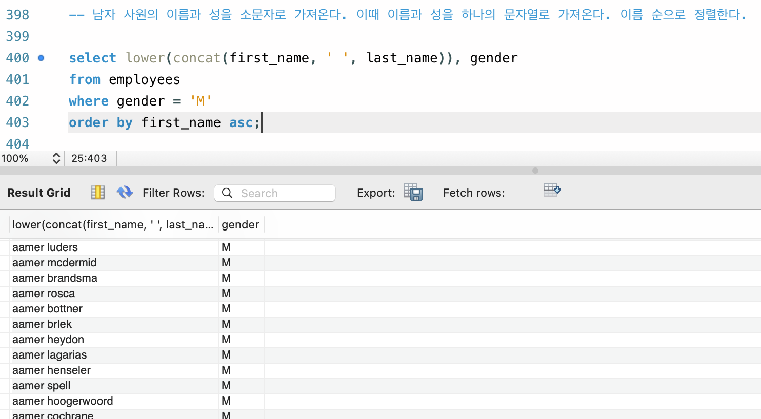 - LCASE(문자열), LOWER(문자열) : 문자열을 모두 소문자로 변경한다.