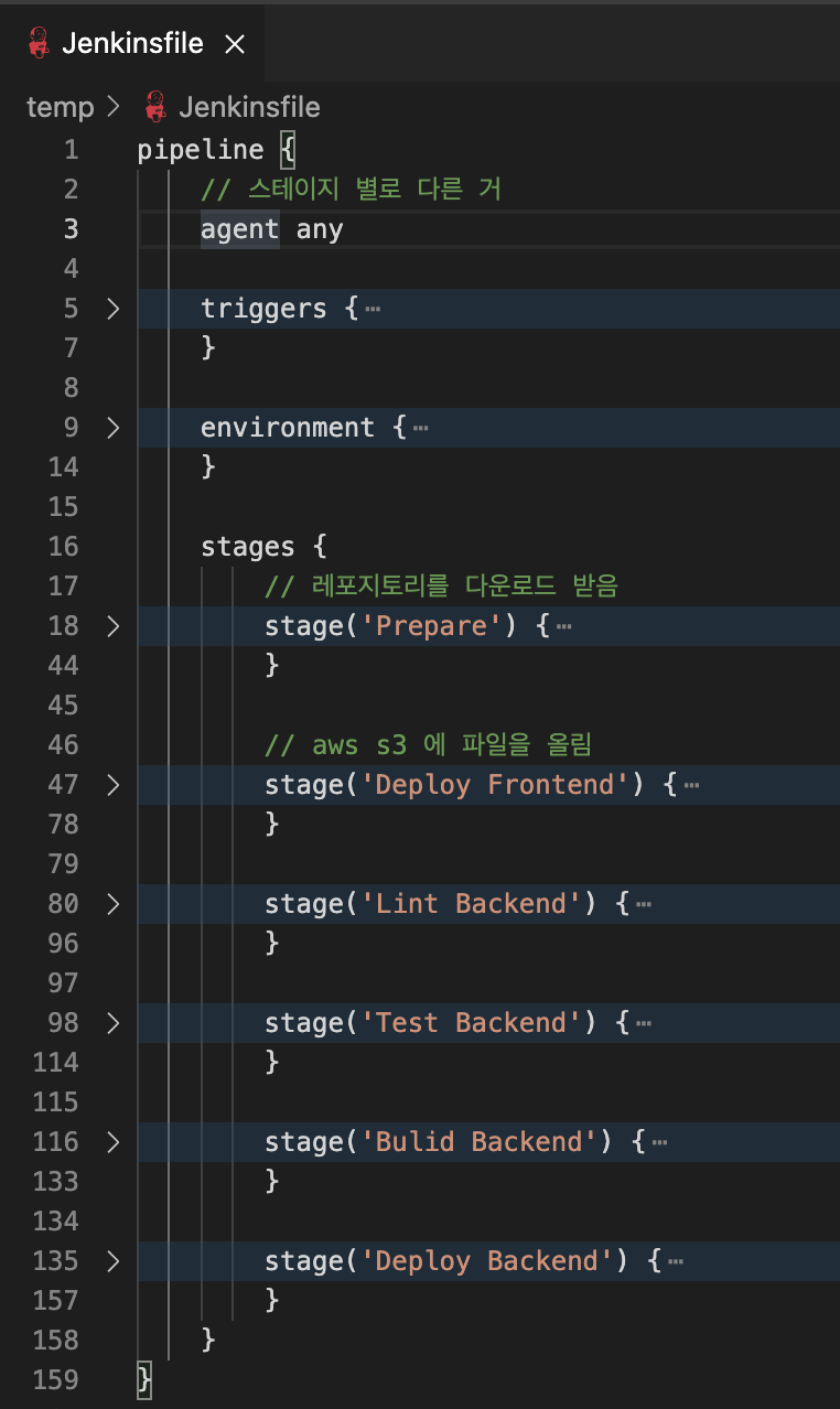 - [Jenkinsfile]을 수정한다. pipleline을 수정함