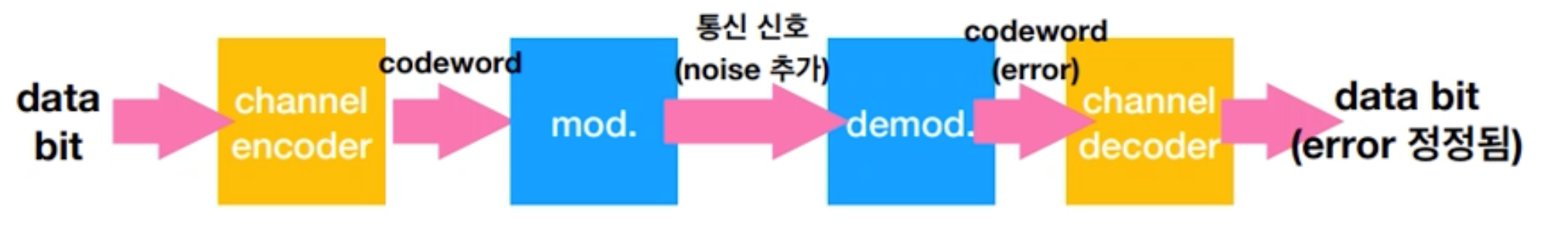 - channel Encoding → Data bit를 재가공해서 고칠 수 있는 형태 (codeword)로 만든다