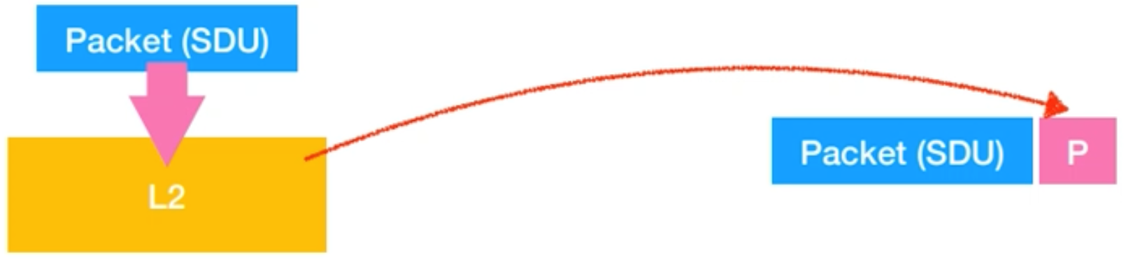 입력 SDU : 보내고자하는 정보로 상위 계층인 L2에서 내려온 것