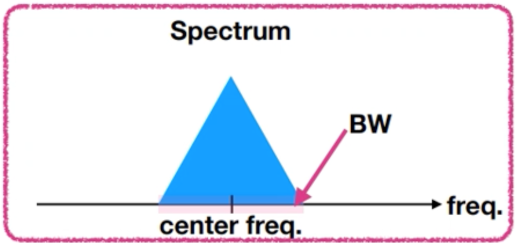 - 스펙트럼은 이 bandwidth내에 있는 주파수의 모양을 말한다