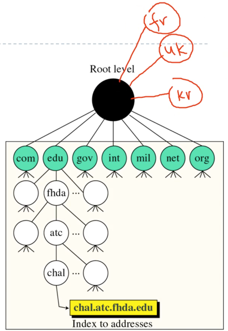예를들어 edu, fdha.edu, atc.fhda.edu, chal.atc.fdha.edu 모두 서브트리를 나타내고 Domain의 이름인 것이다. 참고로 www.naver.com의 경우는 트리 구조상으론 com의 자식노드 naver의 자식노드 www가 있는 구조인 것이다.