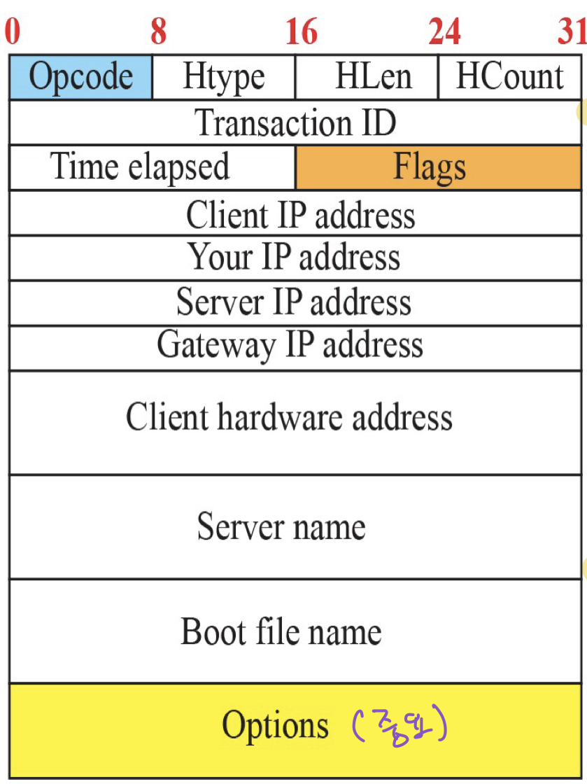 DHCP는 IP주소를 알아내기 위한 프로토콜이지만 계층은 5계층 애플리케이션 계층의 프로토콜이다. 4계층에서는 UDP 프로토콜을 사용한다.