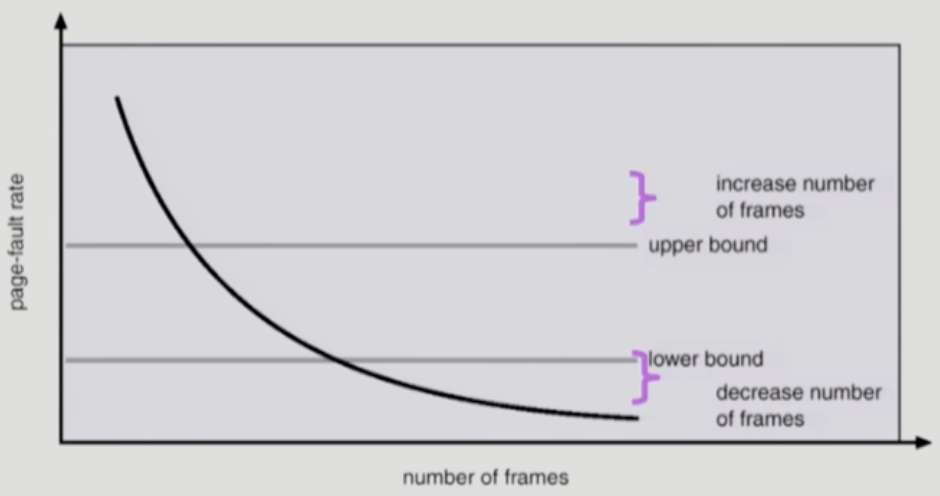 - page fault rate의 상한값 이상인 경우: frame을 더 할당해 준다.