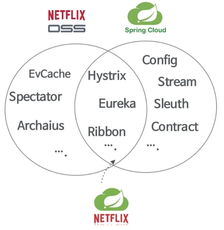 스프링 클라우드 넷플릭스 == (스프링 클라우드 ∩ 넷플릭스 OSS) == Eureka, Hystrix, Ribbon, Zuul ... (넷플릭스 OSS 주요 기능 들) 이라고 볼 수 있다.
