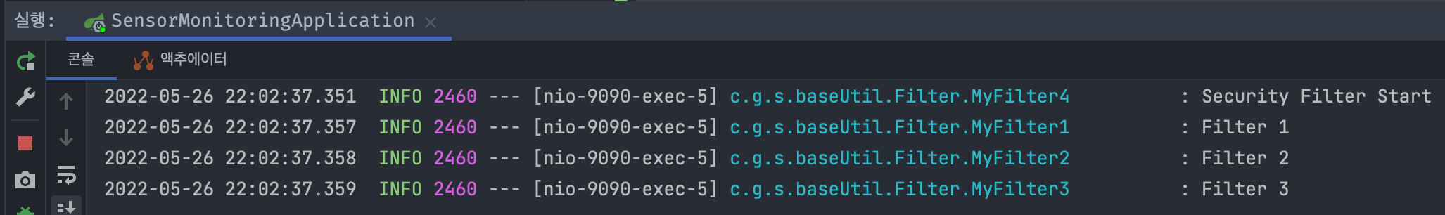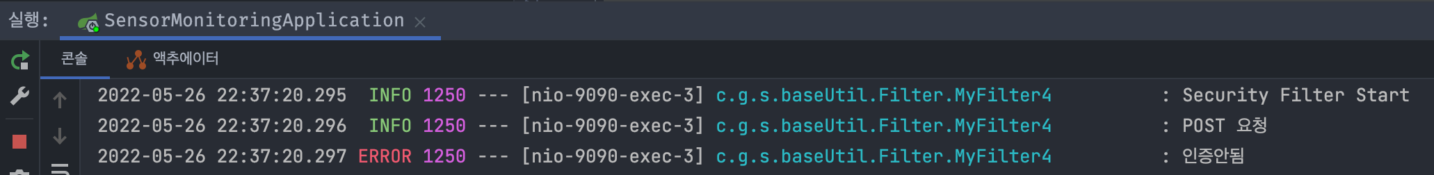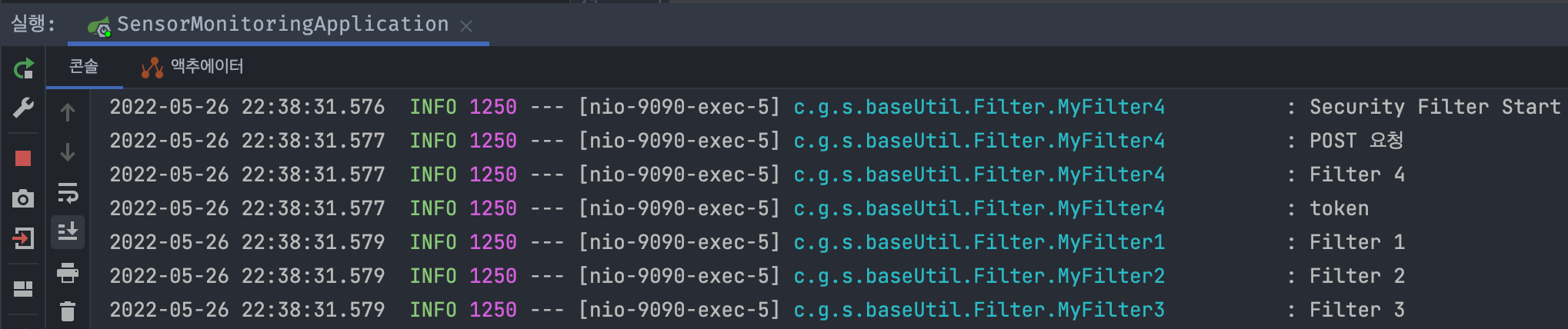 - 정상적으로 필터에서 처리되어 모든 필터가 순차적으로 진행된 것을 확인할 수 있다.