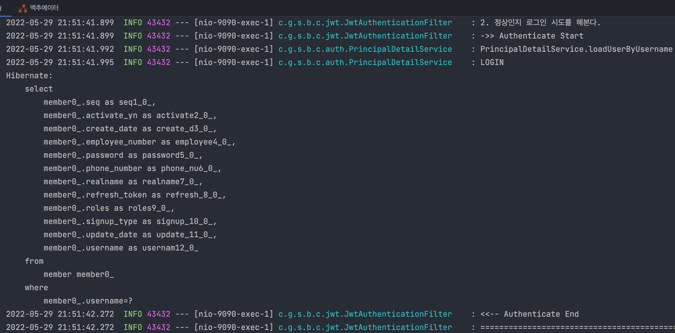 log.info("username : " + principalDetails.getMember().getUsername());