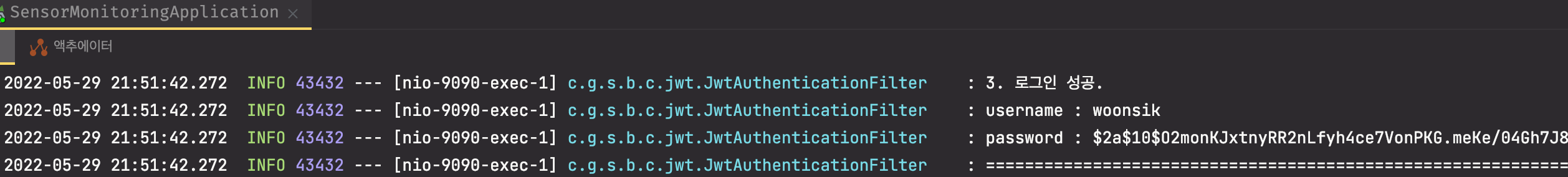 - 정상적으로 모든 인증이 되고 자동적으로 successfulAuthentication() 메소드가 이어서 수행되는 것을 볼 수 있다.
