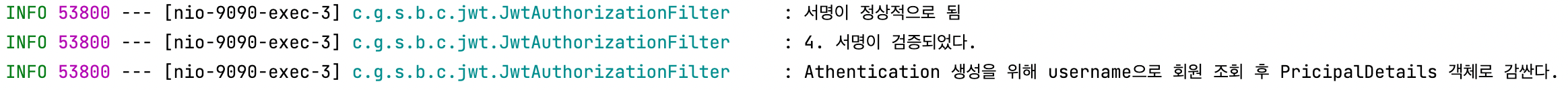 log.info("인증 완료 : JwtAuthenticationFilter.successfulAuthentication");