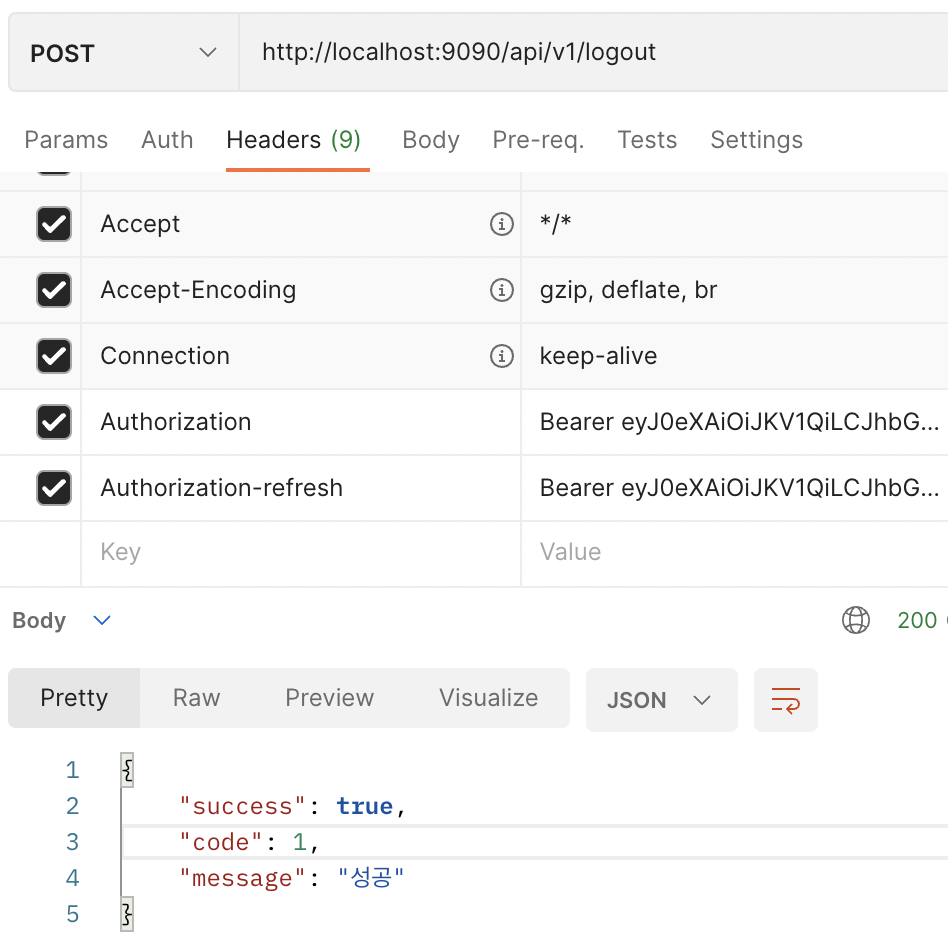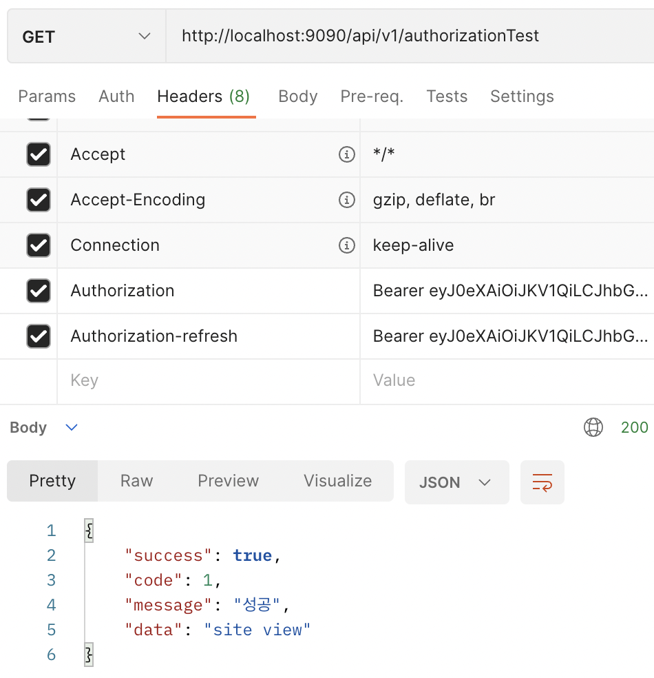 - 이때 Refresh, Access 토큰 둘다 확인한다.