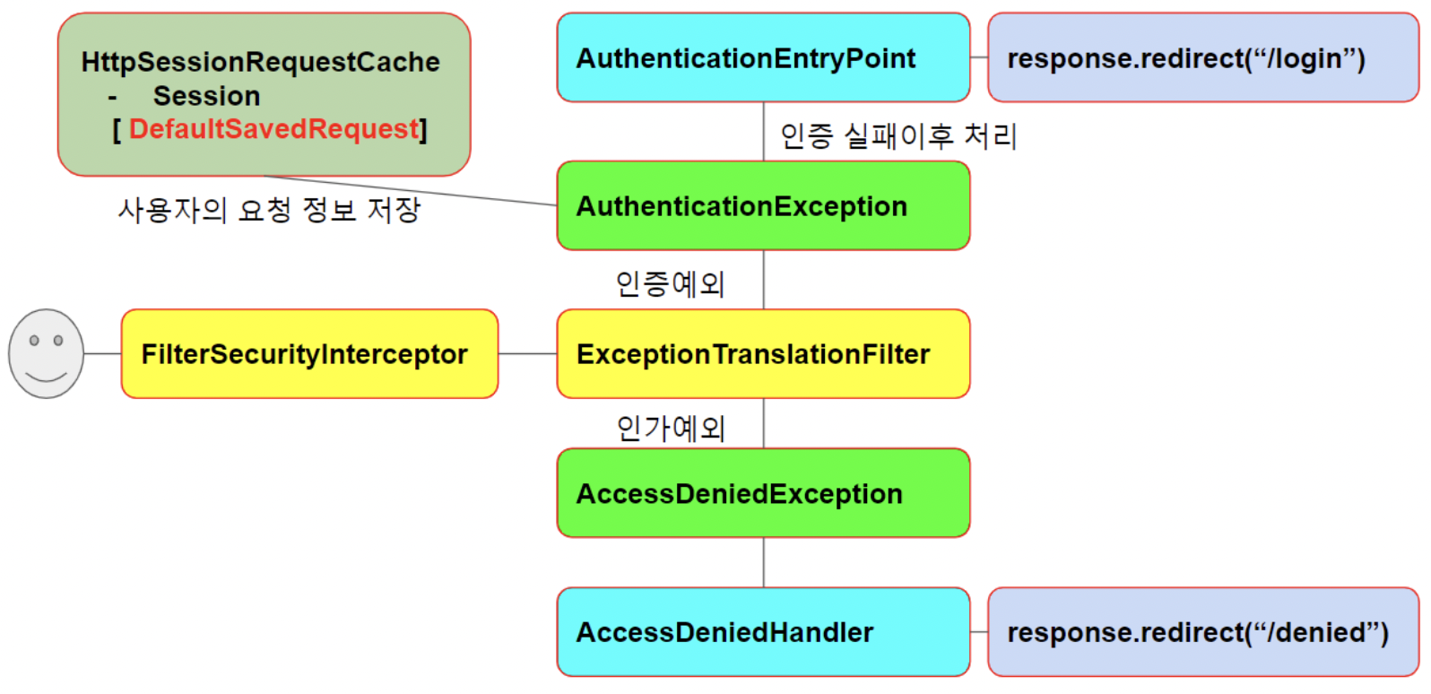 예외 처리를 위해 스프링 시큐리티에 예외 핸들러가 추가되었다.
