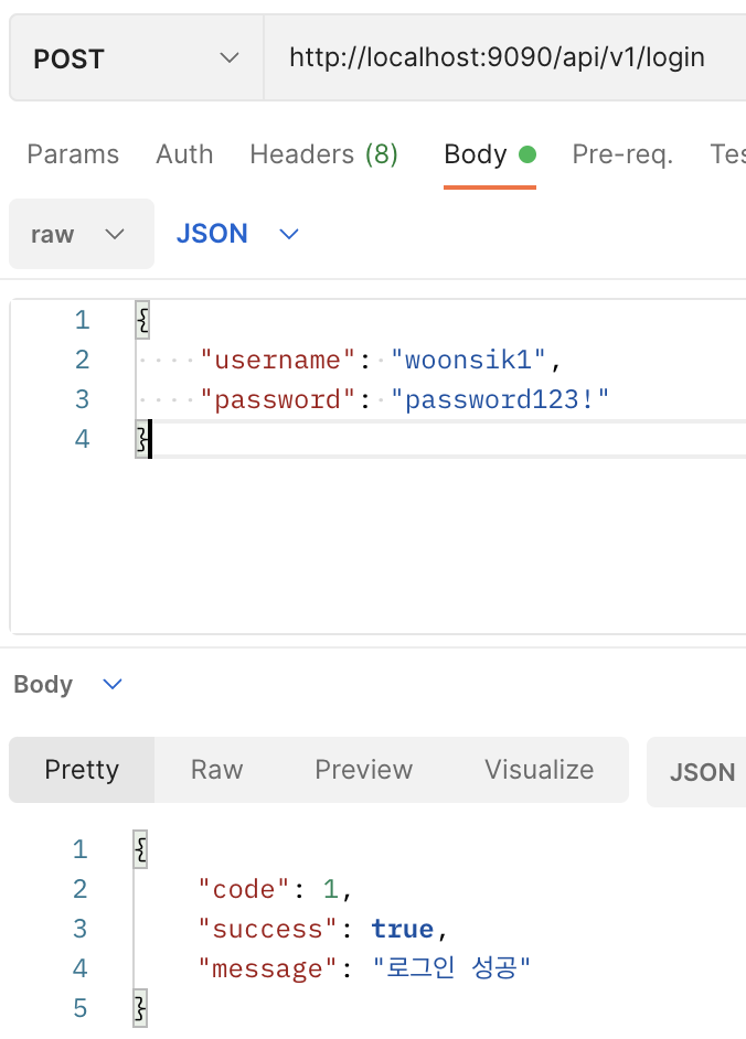 - 성공한 경우 성공 메시지 body를 만들어서 보내도록 setSuccessResponse() 메서드를 생성했다.