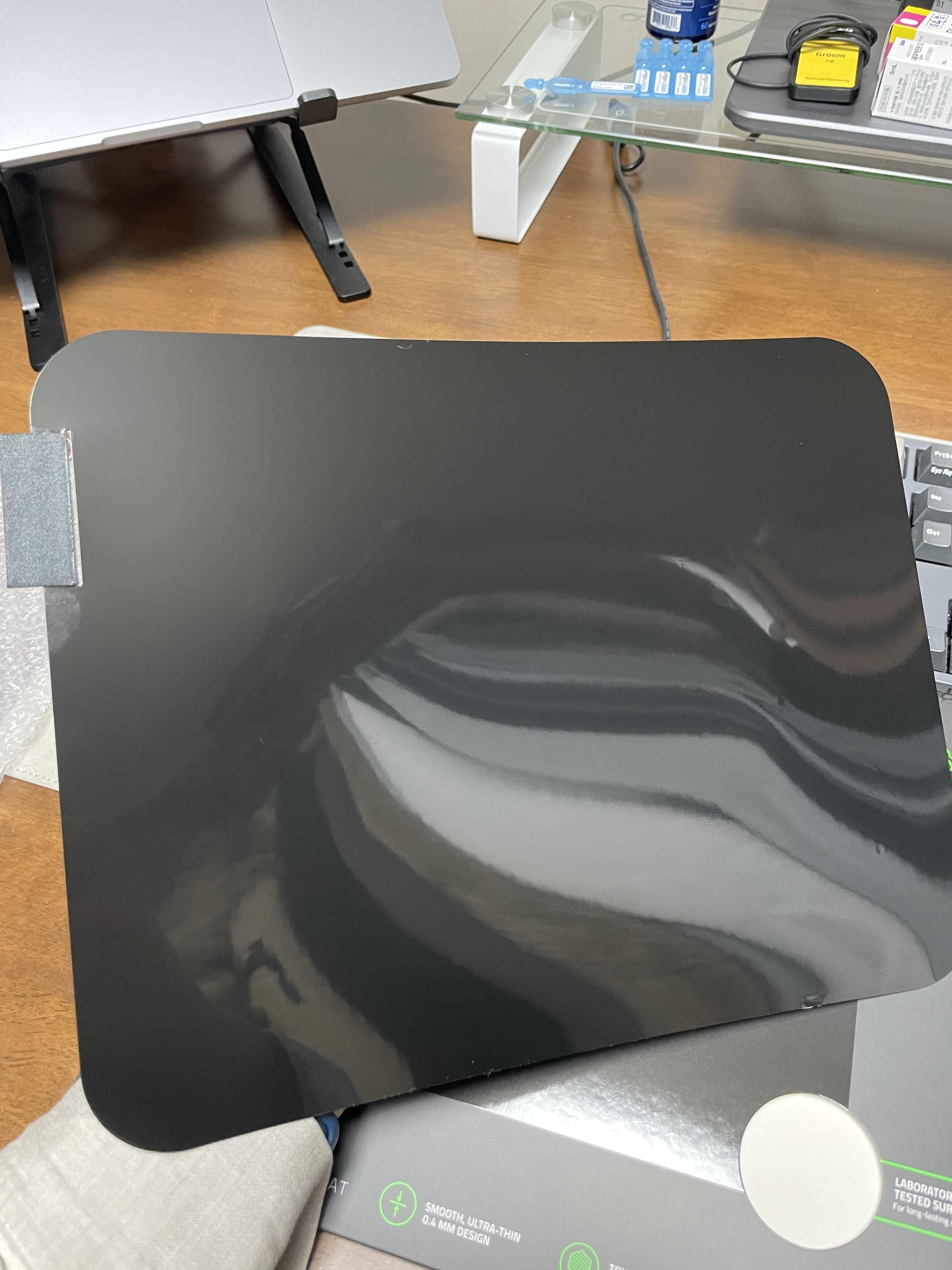 오... 아주 책상에 찰떡마냥 붙는게 아주 안정적이였다. 마우스 패드가 흔들린다라는 개념은 아예 없고 그냥 책상에 딱 붙는 느낌이였다. 그리고 젤이라서 그냥 저 레이저 이름표를 잡아서 들어올리면 다시 자유롭게 이동할 수 있었다.