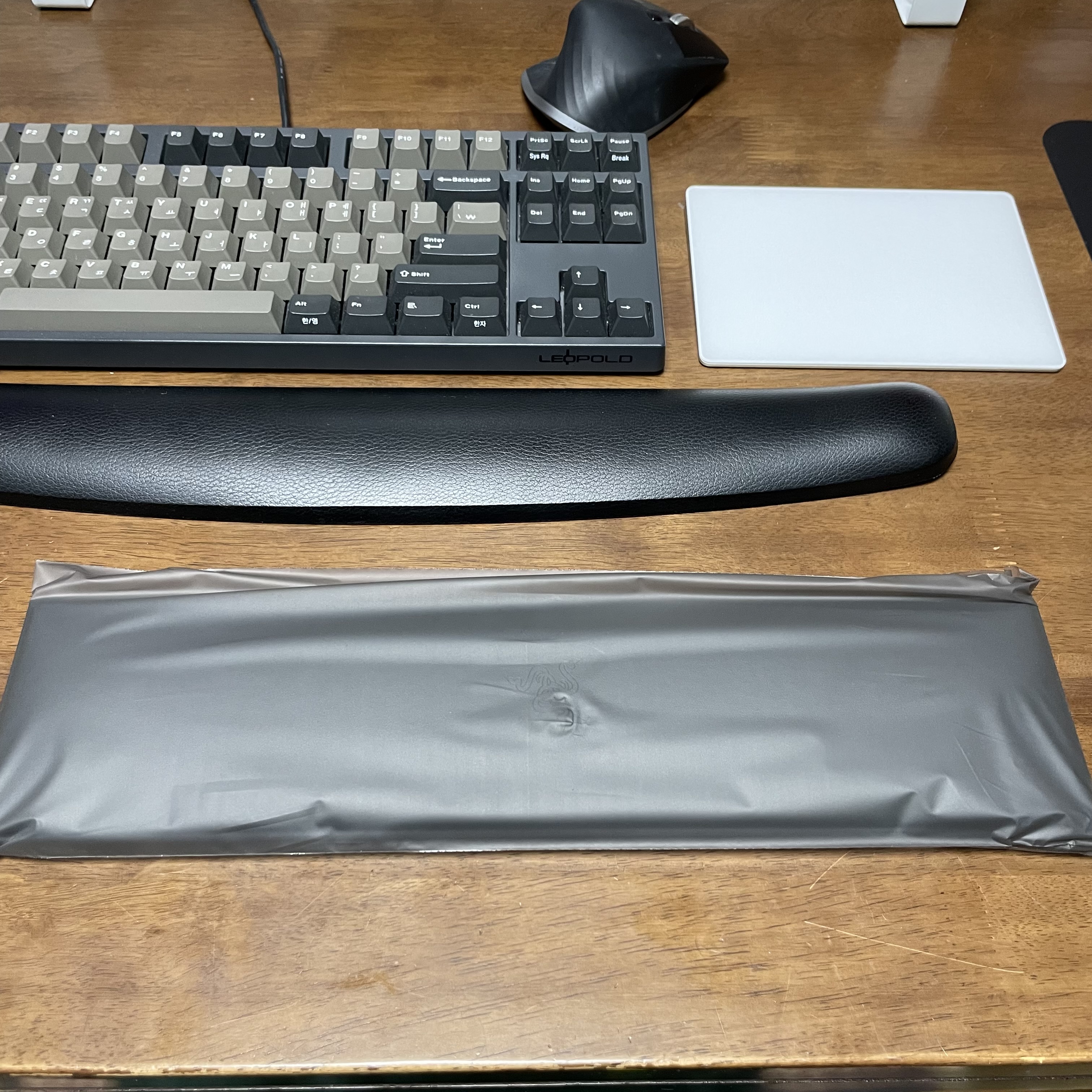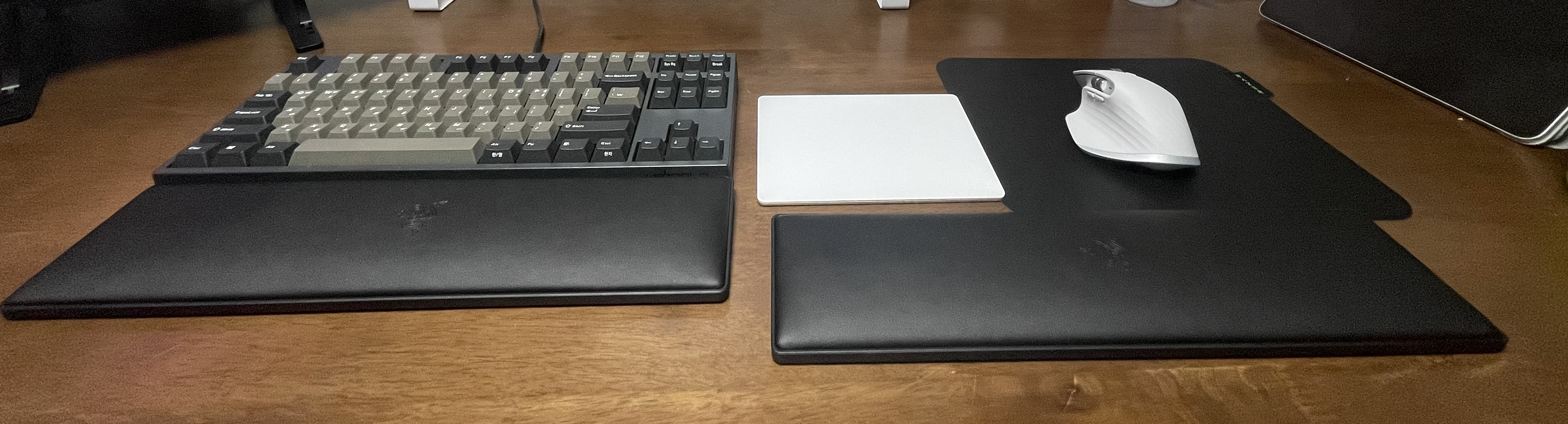 사실 처음부터 사려고 했던건 키보드 손목 받침대였다. 기존에 사용하던게 있긴 했지만 키보드 + 트랙패드 + 마우스 까지 이어지는 길이를 도저히 감당할 수 없어서 TKL 제품 * 2개를 사기로 결정했다. 요건 하나당 2.8만원이라 두개 5.6만원에 구매했다.