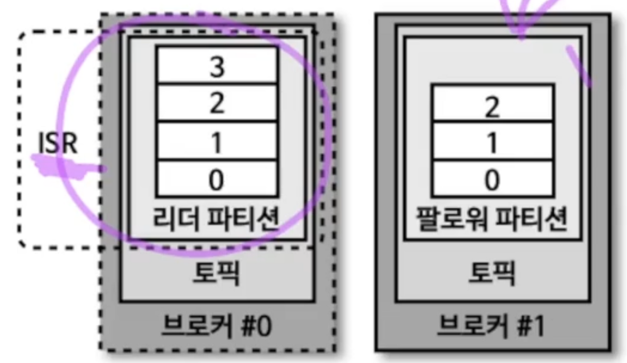 리더 파티션과 팔로워 파티션이 모두 싱크가 된 상태를 뜻한다. 이것은 리더 브로커가 다운되었을 때 팔로워 파티션을 리더로 승급할 지 여부를 결정할 때 중요한 역할을 한다.