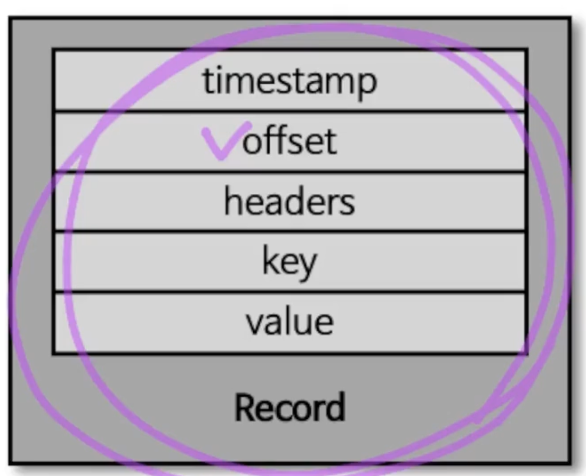 - 프로듀서가 생성한 시점의 레코드에는 존재하지 않는다. 프로듀서가 전송한 레코드가 브로커에 적재될 때 오프셋이 지정된다.