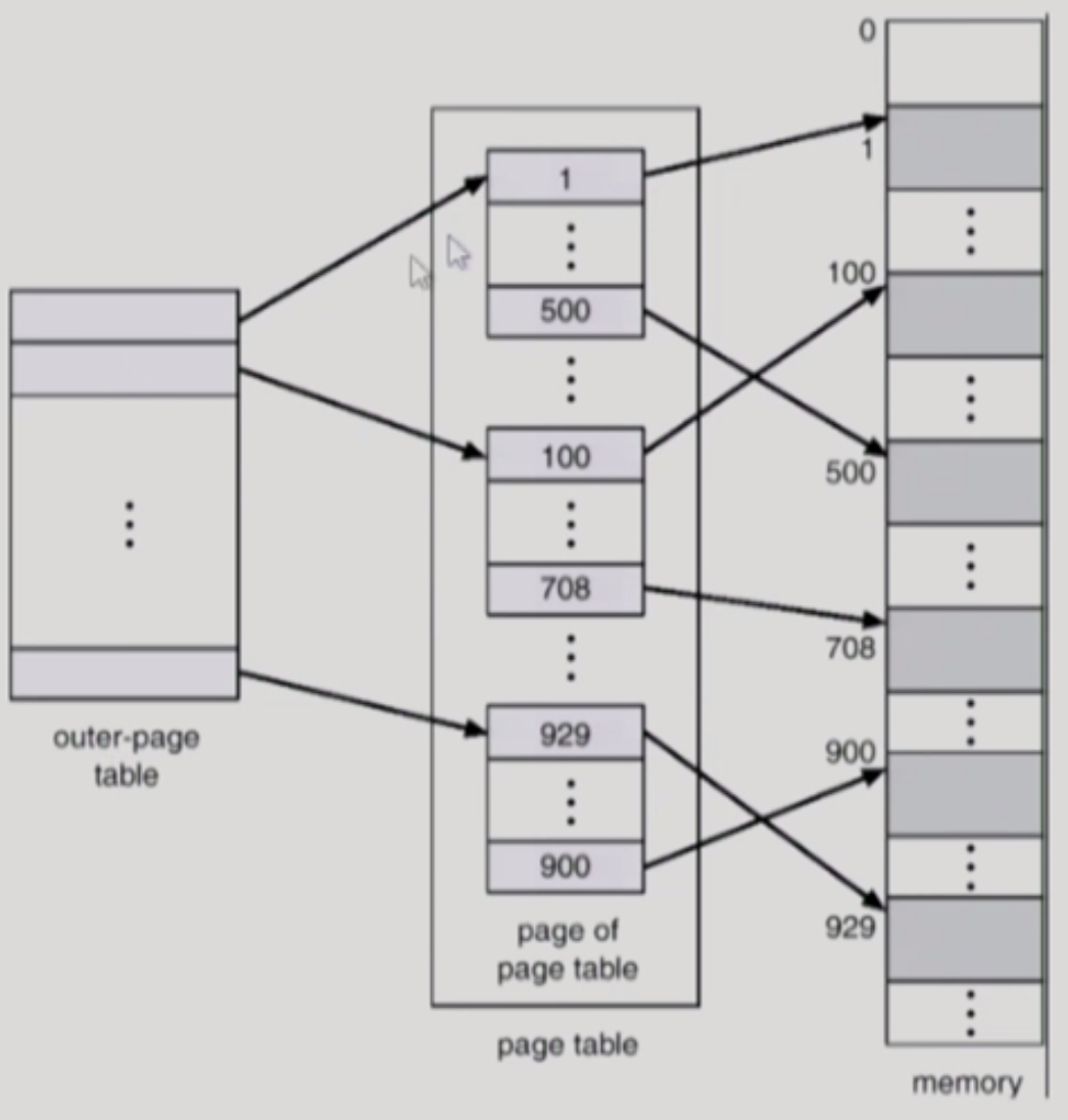 - 20bit 중에서 앞 10bit는 첫번째 Outer Page Table에서 Page를 지칭하는 Index이다.
