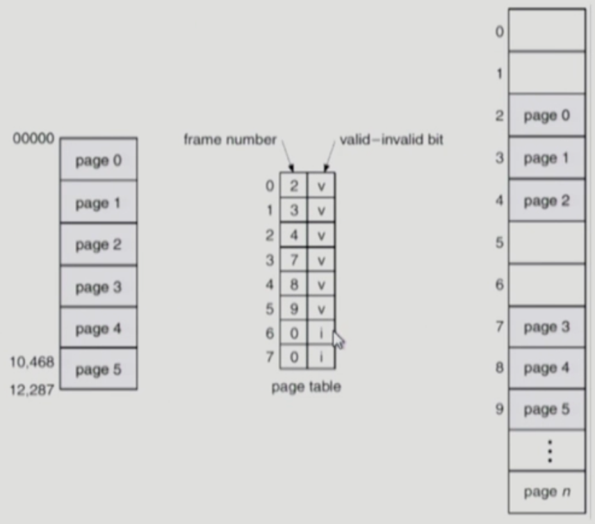 따라서 page table은 대응되는 page 주소와, 해당 값의 유효 여부를 나타내는 valid - invalid bit를 같이 갖게 된다