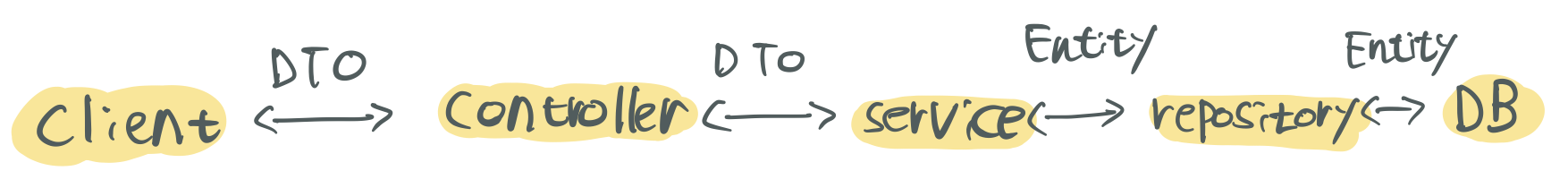 이를 위해 DAO와 DTO라는 개념이 나온 이유일 것이다. DAO는 영속성 영역에서의 Model의 Entity클래스를 의미하고, DTO는 View와 Controller간의 영역에서 사용되는 객체라고 보면 된다.
