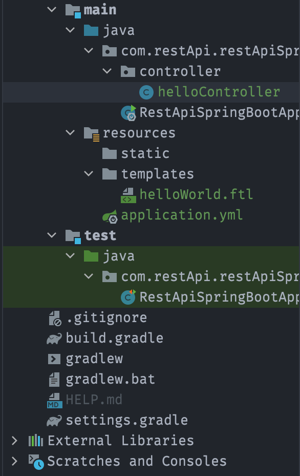 그렇지 않다면 반환한 문자열에 대해서 ViewResolver가 prefix에는 classpath를 suffix에는 확장자명(.ftl)을 붙여서 변환을 해준다. 그럼 View에서 해당 위치의 일치하는 viewTemplate 파일을 찾아서 반환하게 된다.