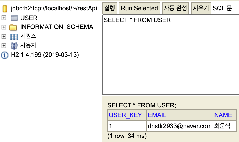 DB에서 괸리해줄 User 엔티티도 만들었고 해당 엔티티를 담을 Table과 규칙도 정의했다.