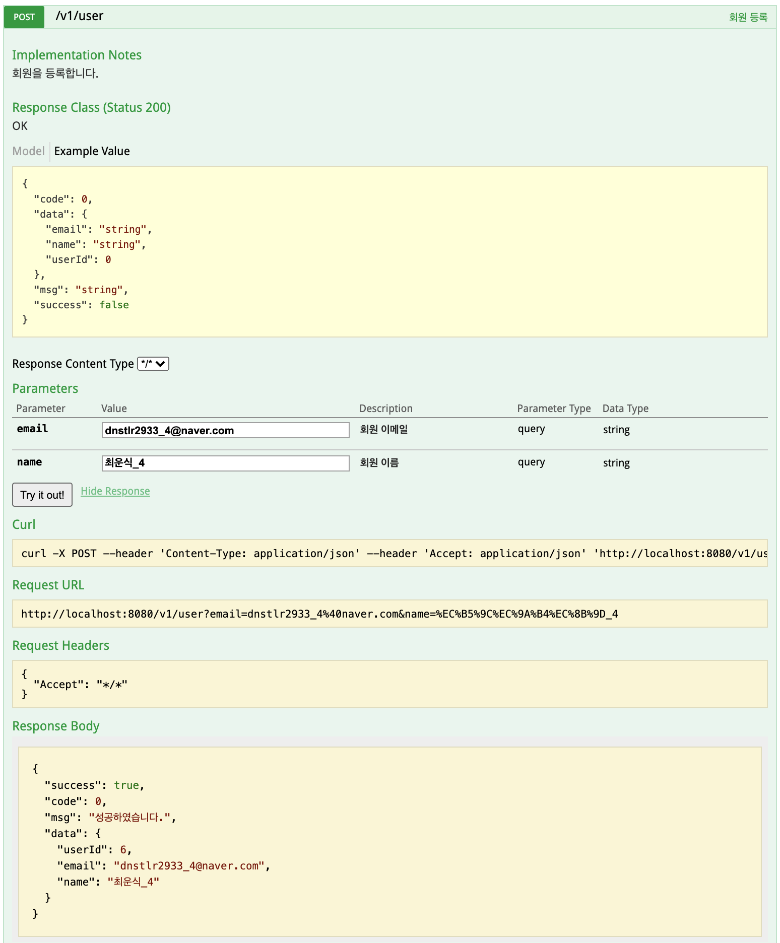 public SingleResult<User> save(@ApiParam(value = "회원 이메일", required = true) @RequestParam String email,