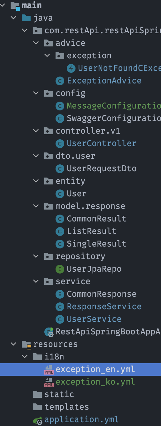 여기서 basename이 i18n/exception으로 설정되어있는데 이는 "resources/i18n/" path에서 "exception_로케일.yml" 파일을 읽어서 해당 내용으로 표시하라는 뜻이다. 인코딩은 UTF-8로 하겠다는 것.