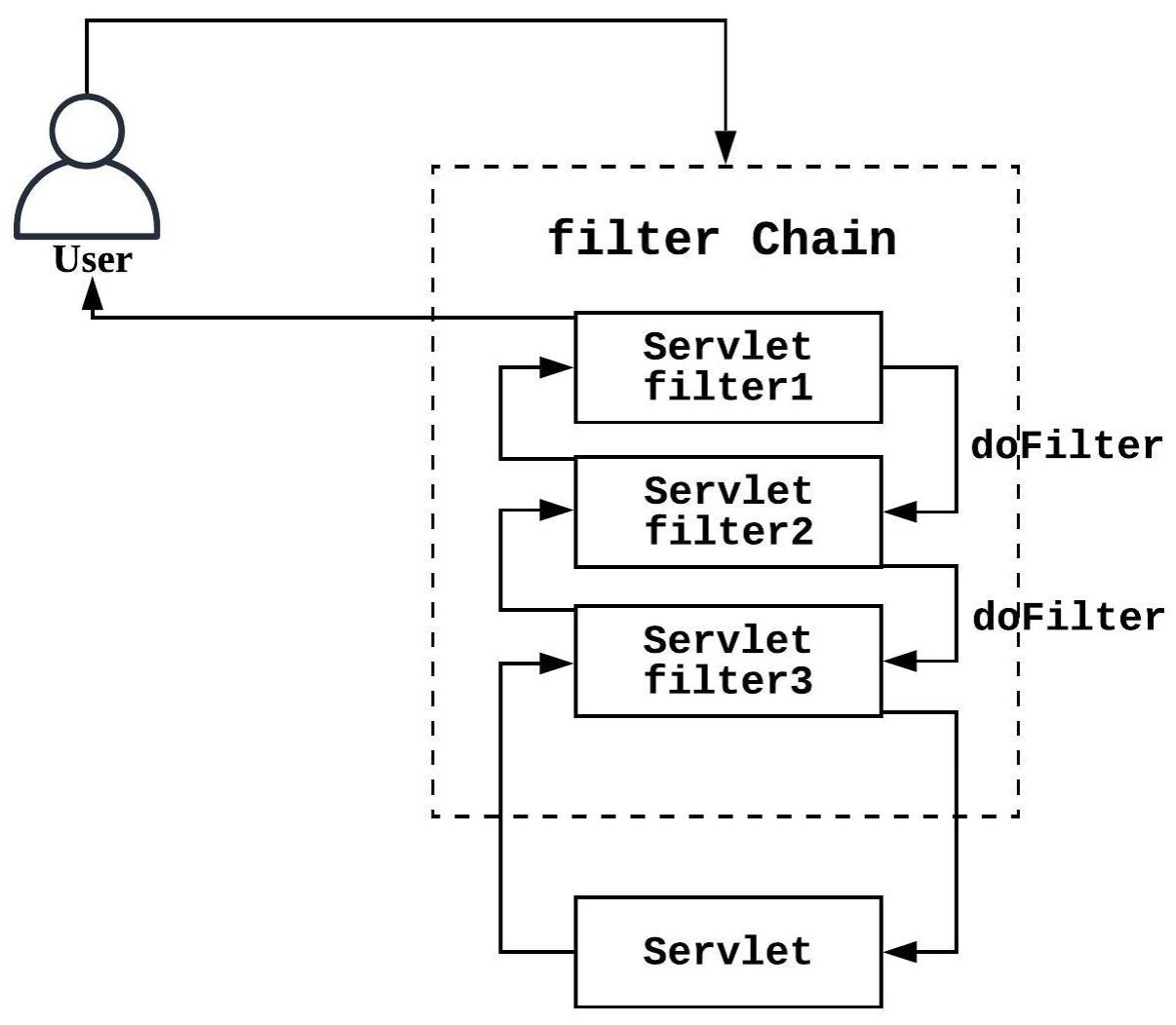 스프링 시큐리티는 Filter(필터)를 사용해서 이 부분을 해결한다.