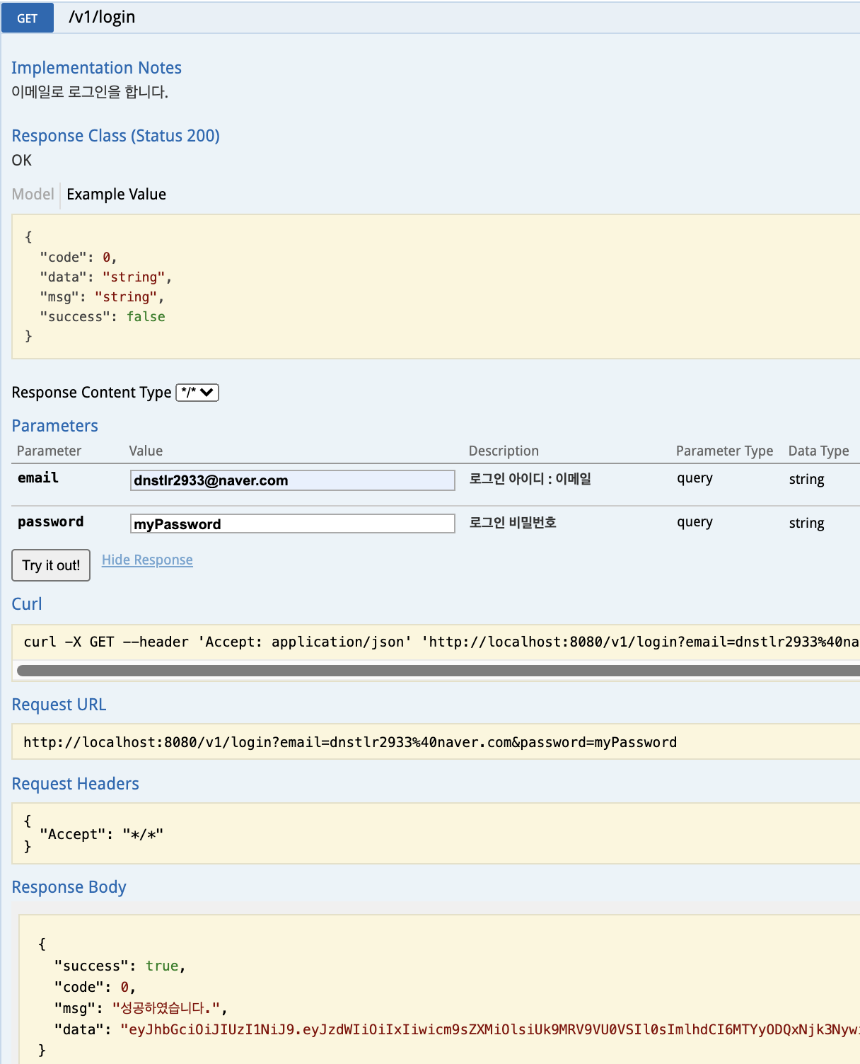 Swagger 테스트 진행