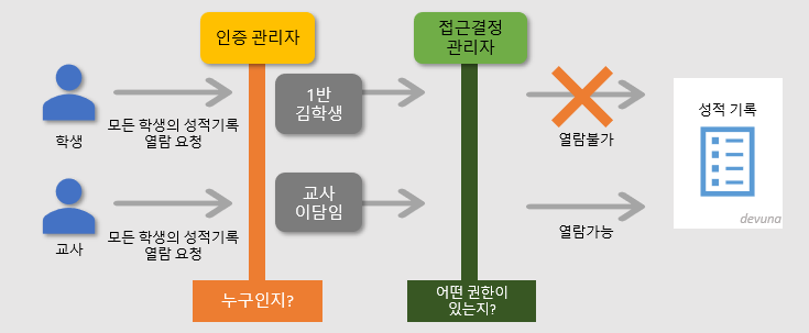 - 인증관리자와 접근결정 관리자를 통해서 사용자의 리소스 접근을 관리한다