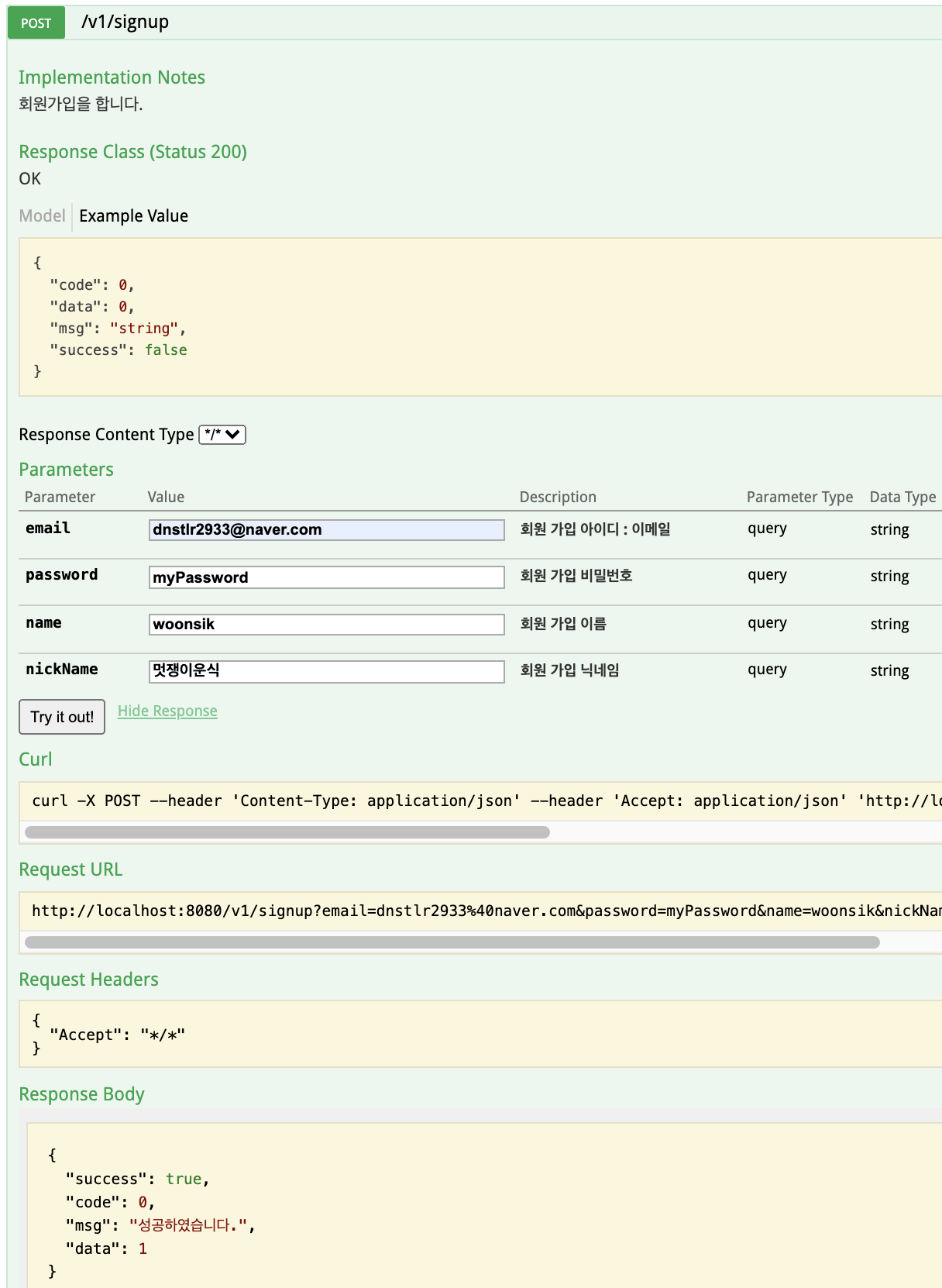 @ApiParam(value = "회원 가입 이름", required = true) @RequestParam String name,